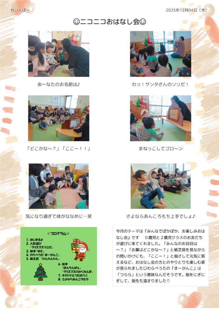 今月のテーマは『みんなでぽかぽか、お楽しみおはなし会』です📚