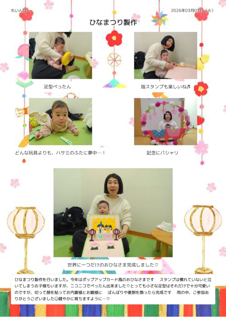 今年のひなまつり製作は今年はポップアップカード風のおひなさまです🌸