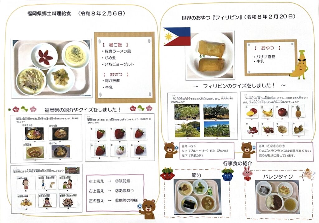 郷土料理は福岡県、世界のおやつはフィリピンでした。