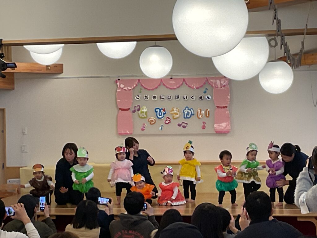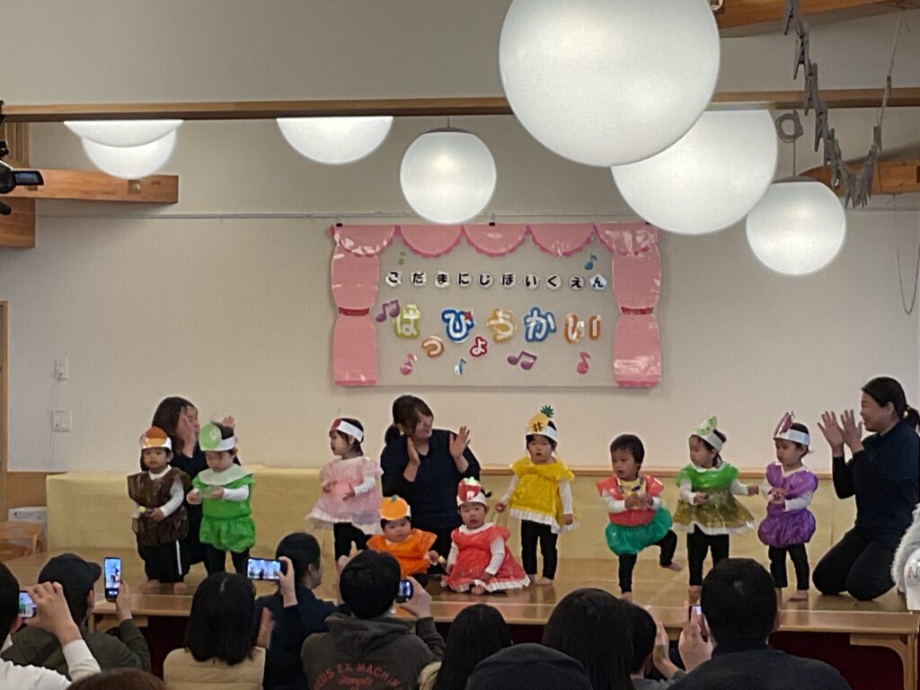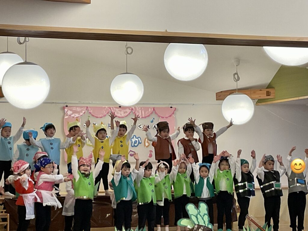 小さな手を大きく広げて「世界中の子どもたちが〜♪」と歌う姿からは、子どもたちの純粋なパワーが伝わってきて、温かい感動が広がりました。みかん組さんのニコニコ笑顔と歌声が、明日への元気を届けてくれましたね。