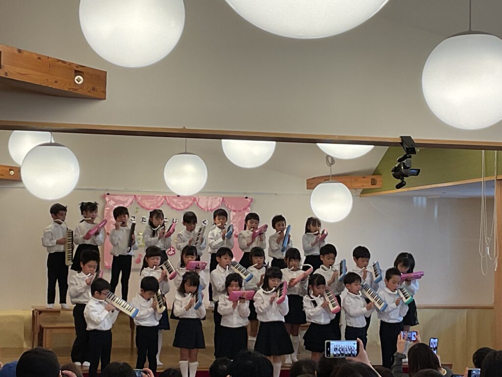 ステージに並んだ子どもたちが、一斉に息を吹き込み奏でたのは、名曲「にじ」。 一つひとつの音を丁寧に、そしてお友だちの音を聴きながら合わせようとする姿に、これまでの確かな歩みを感じて胸がいっぱいになりました。 最後の一音が終わったあとの、凛とした静寂と誇らしげな子どもたちの表情が、演奏の素晴らしさを物語っていましたね。