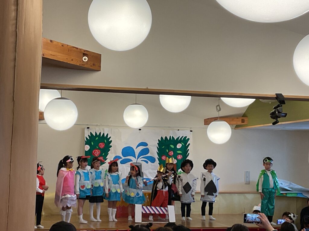 トランプの兵隊さんや、お茶会を楽しむ仲間たち、そしてアリス・・・それぞれのキャラクターが生き生きと舞台を駆け回り、まるで本当に不思議な国に迷い込んだような、ワクワクする空間を作り出してくれました。 物語の最後まで、全員が心をひとつにしてやり遂げた姿に、会場からは大きな拍手が送られました。