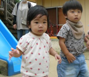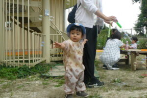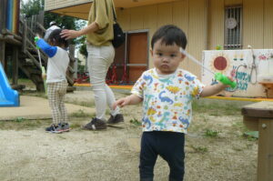 10月3日に、園庭で遊びましょうがあり、10組のお友だちが遊びに来てくれました🌝