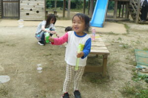 手持ちのシャボン玉にも挑戦‼