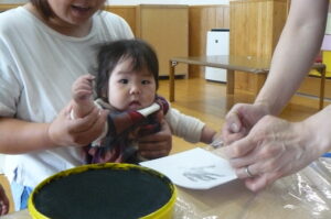お名前を書いてもらい、出席シールを貼ります!(^^)!