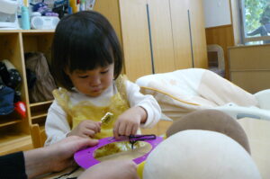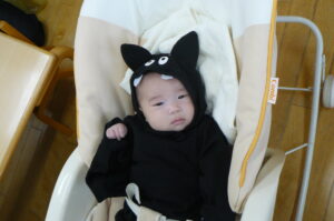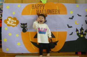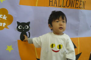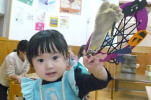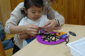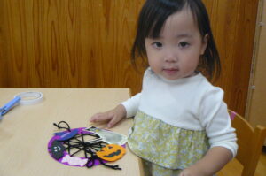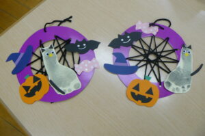 今日は後期親子教室ランラン(1歳児コース)があり、昨日のルンルン同様ハロウィン制作を行いました🎃