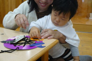支援センター虹🌈10/22後期親子教室ランラン(1歳児コース)ハロウィン制作🎃