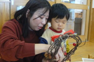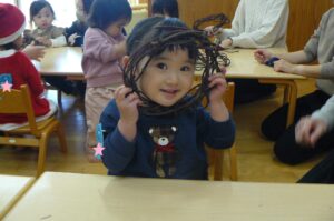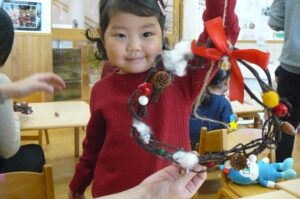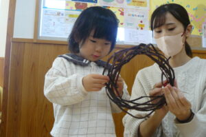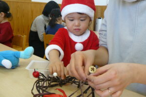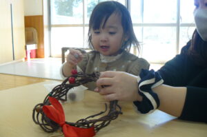今日は親子教室ランランがあり、クリスマス制作でリース作りを行いました!(^^)!