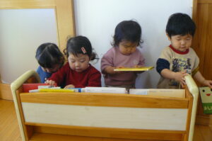 みんなで絵本選び、微笑ましいですね(*^^*)