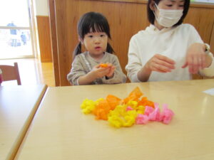 ご挨拶後、髪の毛で使うお花紙の色選びをしました‼
