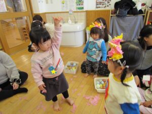 かわいい鬼さんなので、集まって来てくれました(^^♪