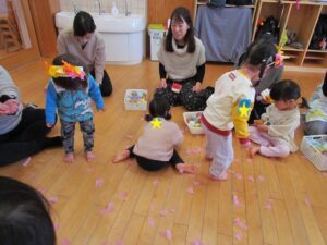 支援センター虹🌈1/14親子教室ランラン(1歳児コース)「節分制作👹」