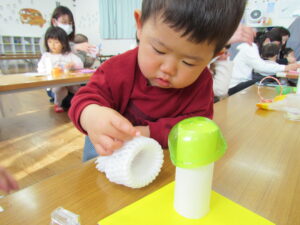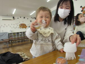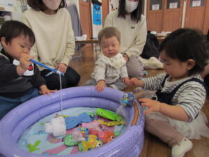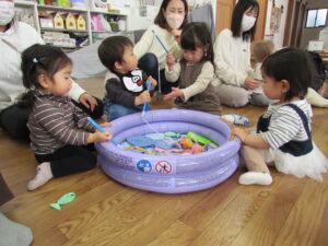 今日使ったもの以外にも、食品トレーや牛乳パックなどでも楽しめますので、ぜひお家でもお魚釣り楽しんでみて下さい!(^^)!