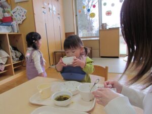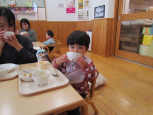 お椀飲みに初挑戦✨✨上手に飲んでいました(*^^*)