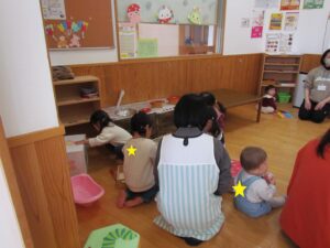 ママの所で一緒にお話を聞いていましたね(^^♪