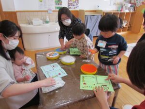手形スタンプはどのお子さんも楽しんで押していましたね😊
