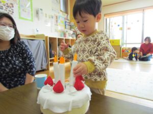 カードの作成の後は…フエルトで作ったケーキに🎂年の数だけロウソクを立てたり、インタビューにも答えてもらいましたよ♪