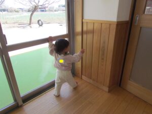 歯磨き指導のお友だちの泣き声が聞こえはじめると…そーっとドアの所へ(*^^*)