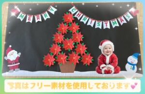 12月は「ポインセチアのクリスマスツリー」でした!立体のお花に興味津々でしたね🌺