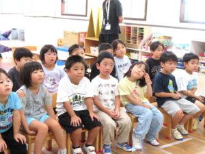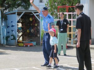 ちょっと緊張気味のひまわり組さんでしたが、横断歩道の渡り方についてのお話を真剣に聞いていました!