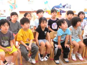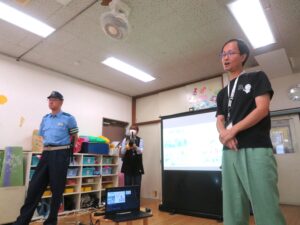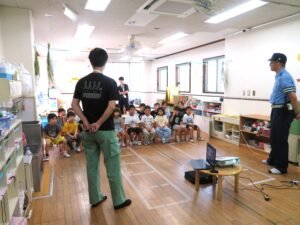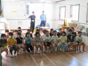 ちょっと緊張気味のひまわり組さんでしたが、横断歩道の渡り方についてのお話を真剣に聞いていました!