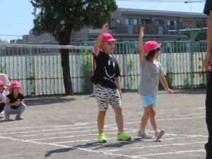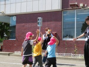 では、園庭で実際に横断歩道を渡ってみましょう!