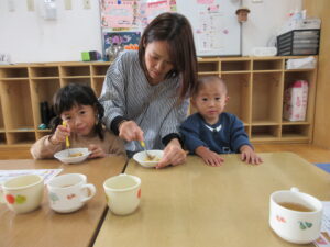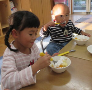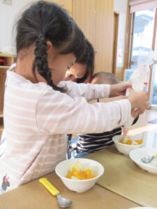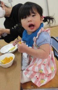 器の中に果物が入っていたので、そのまま口に運ぶ子もいましたよ。