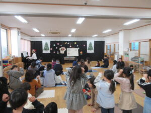 クリスマスコンサートは16組のご家族がいらして下さり、ハンドベルや手遊び・パネルシアターなど一緒に楽しい時間を過ごすことが出来ました。ありがとうございました。