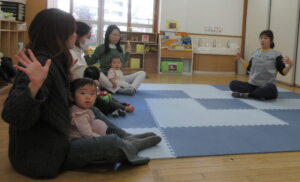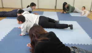 練習しているときから、腕の中でゆらゆらしていると、お目目がトロンとする子がいたり、一緒にジャンプをすると声を出して楽しんでくれたりしていました。