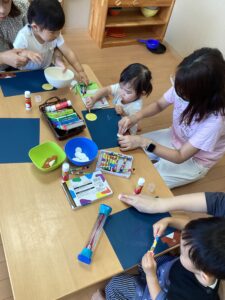 先生の見本を興味津々で見ながら早くやってみたい!とわくわくしている様子が伝わってきました。