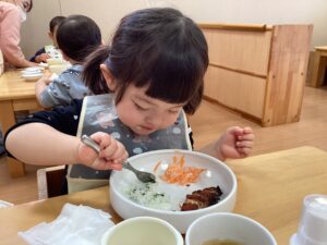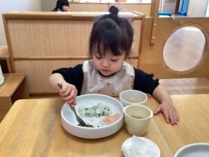 皆、どれから食べようかな?と、一生懸命スプーンですくっていますね!