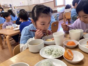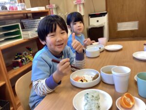花形の七草おにぎりを喜んでくれていた様子です。