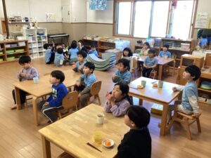 幼児クラスでは給食を食べる前に、「おせち料理の言われ」について話をしました。