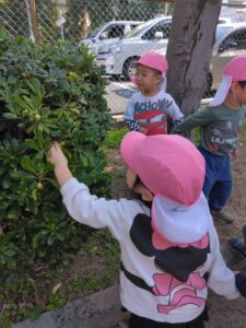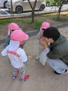 少し距離がありましたが、子ども達は友達や保育教諭と手をつないで歌を歌いながら歩き、道中の草花を見つけて会話のやり取りを楽しんでいました!