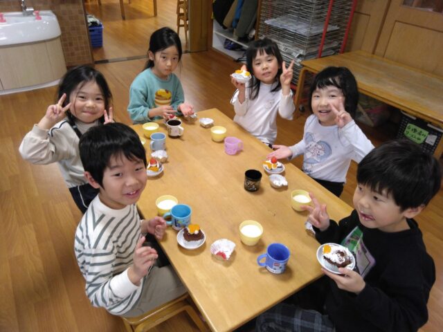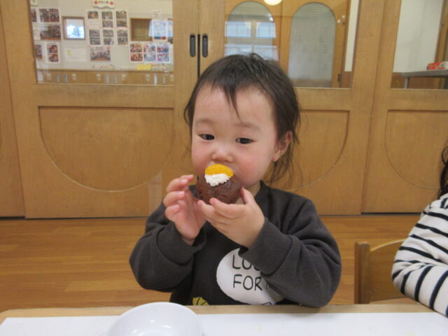 そして、ふじ組の子ども達は自分たちでカップケーキのデコレーションを行いました。