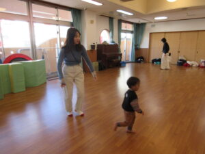 音楽に合わせて歩いたり、一本橋を渡ったりしながら身体を動かしました。