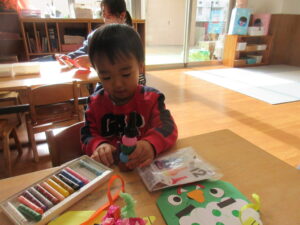クレヨンでお絵描きも楽しんでいましたよ♪