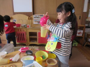 終わってからも、鬼のバックをつけておままごとを楽しんでいましたよ!