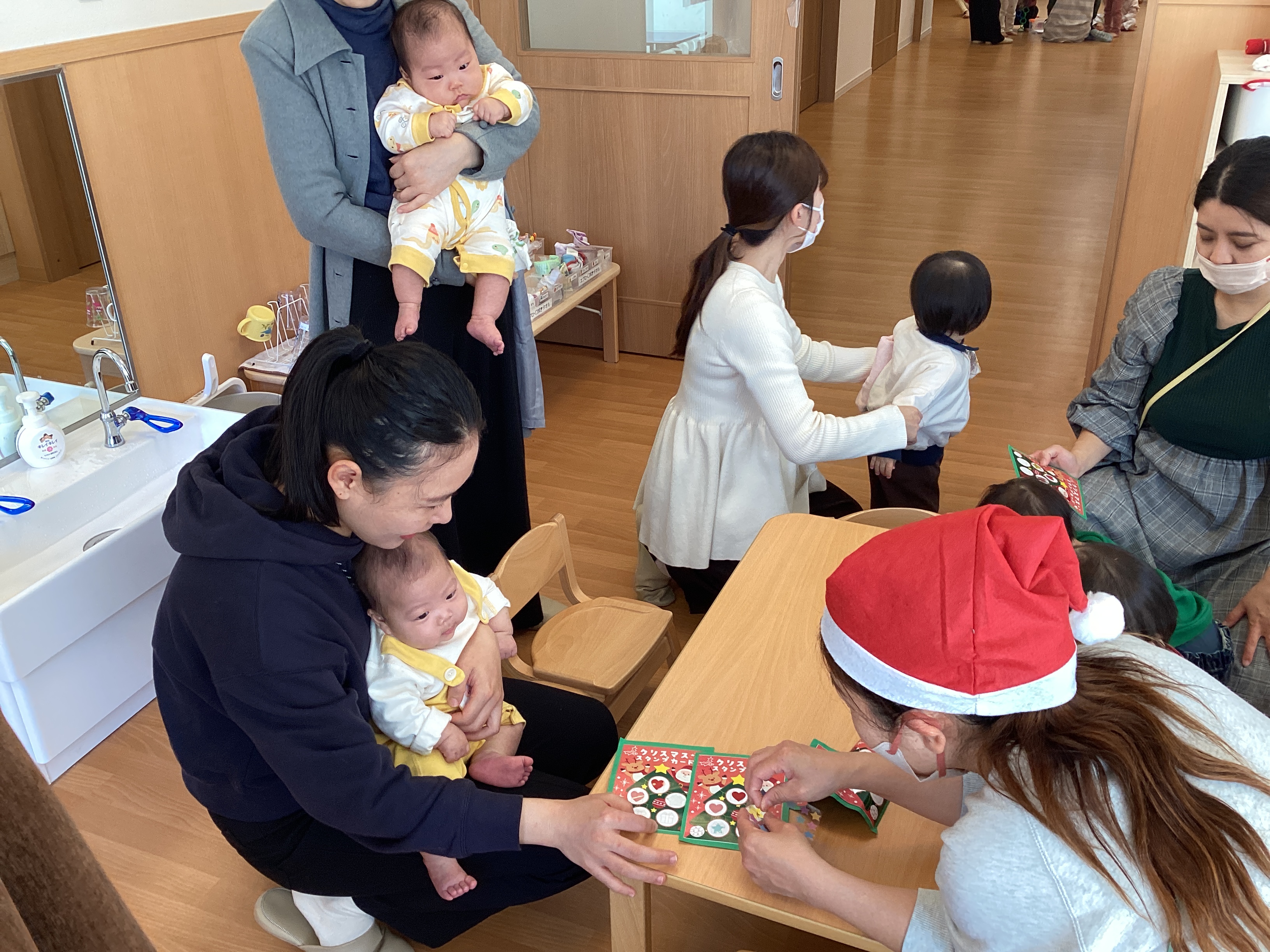 サンタの帽子を被った、先生を見つけてシールを集めよう!
