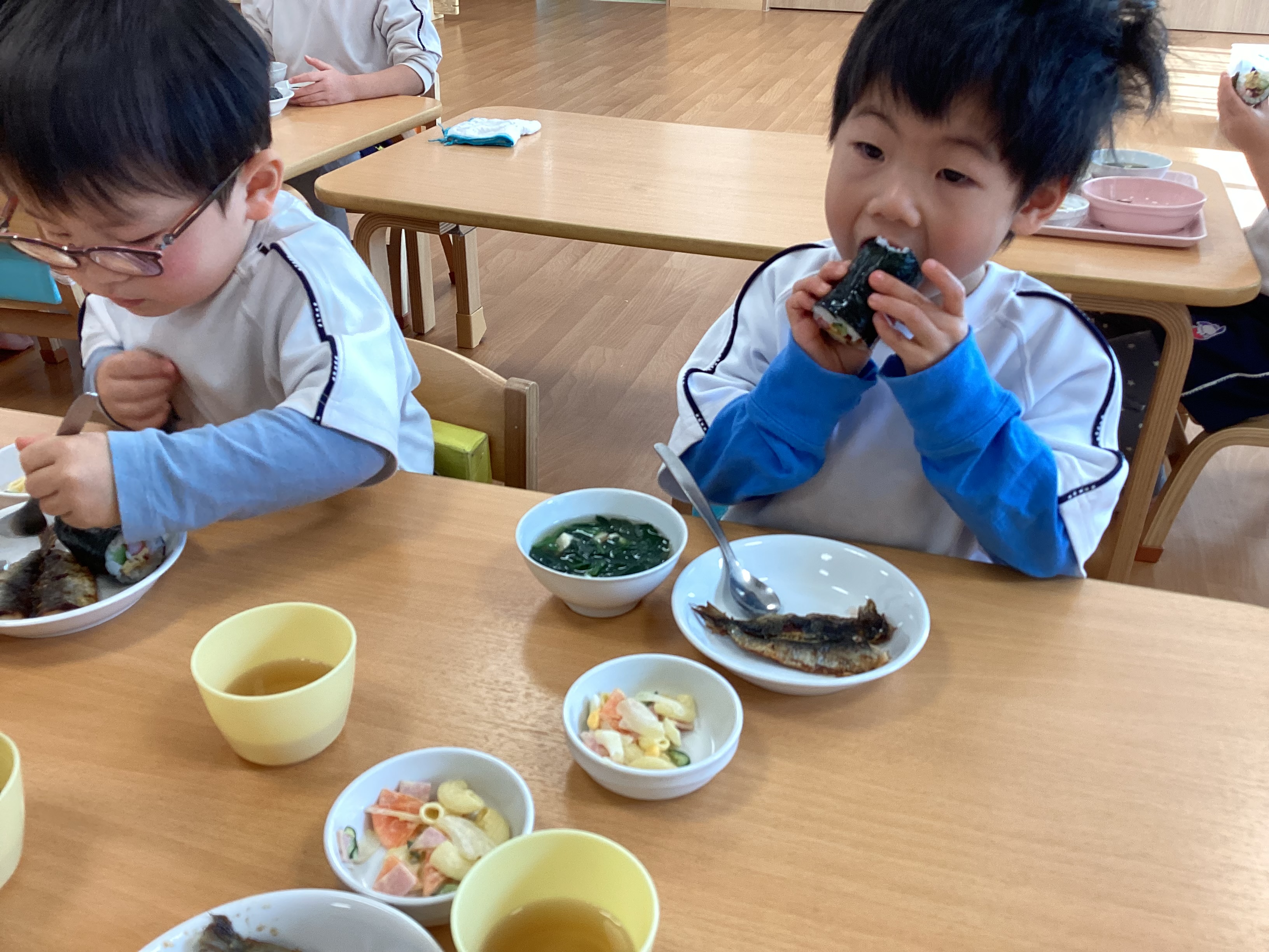 給食は、恵方巻きやイワシが入った節分ならではの献立でした。