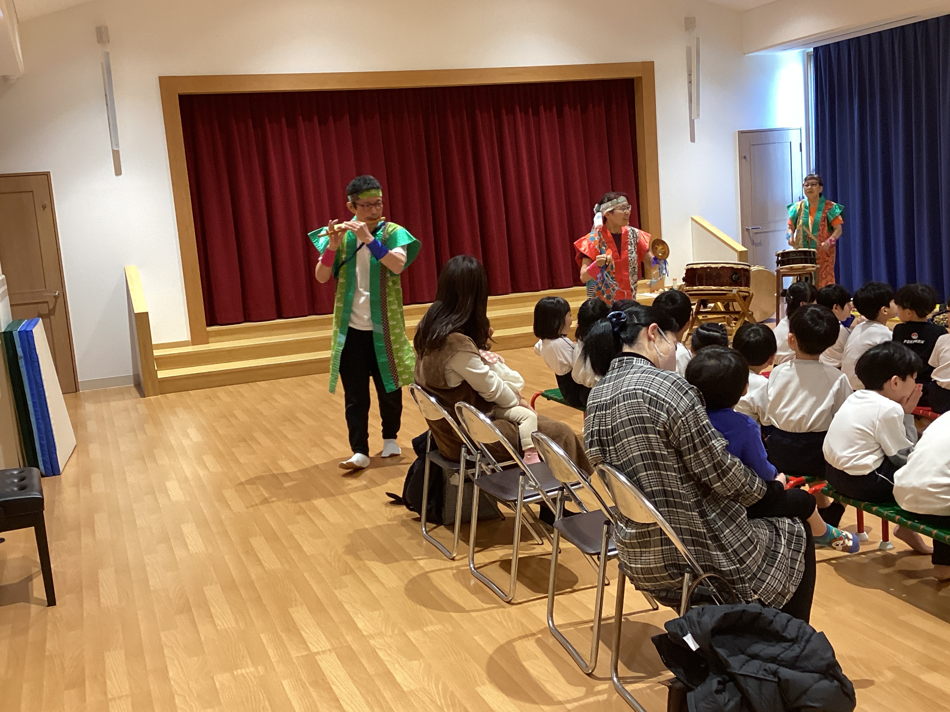 太鼓だけでなく、竹でできた笛も登場しました。