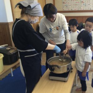 「いいにおいがする!」みんな混ぜるのもどんどんうまくなってきました。