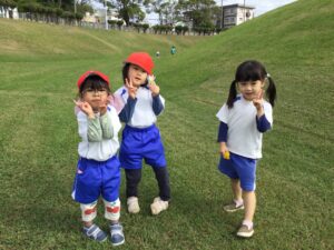 その後は広場であそんだよ。ハイ、チーズ!カシャ!