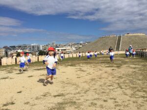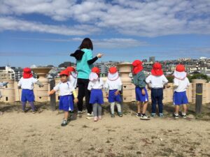 頂上はとても高くて、どこまでも見えそうでした。こども園もみえるかな~?