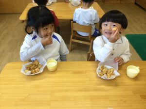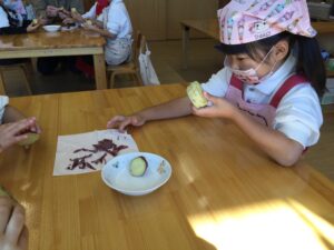 お芋掘り行って収穫したさつまいもを使ってクッキングをしました!