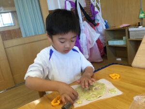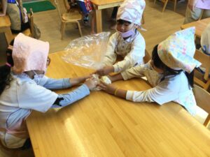 みんな好きな形にして、給食室の先生にバトンタッチ!