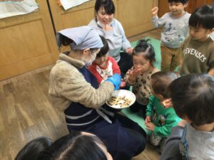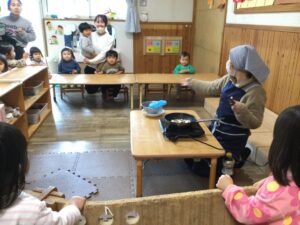 普段の給食ではきのこを食べない子どもも、ひと口食べてみようとする姿が見られました。