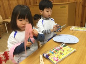 ハサミを上手に使えるようになってきたため、今後も色々な制作をしてあそびを広げていきたいと思います!