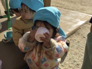 たくさん遊んでたくさん笑ったあとは、お茶を飲んで休憩タイムです。