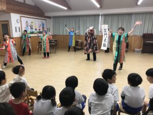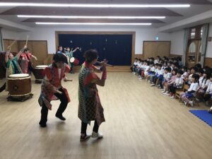 軽快なリズムと響く太鼓の音、掛け声にみんな夢中になりました!
